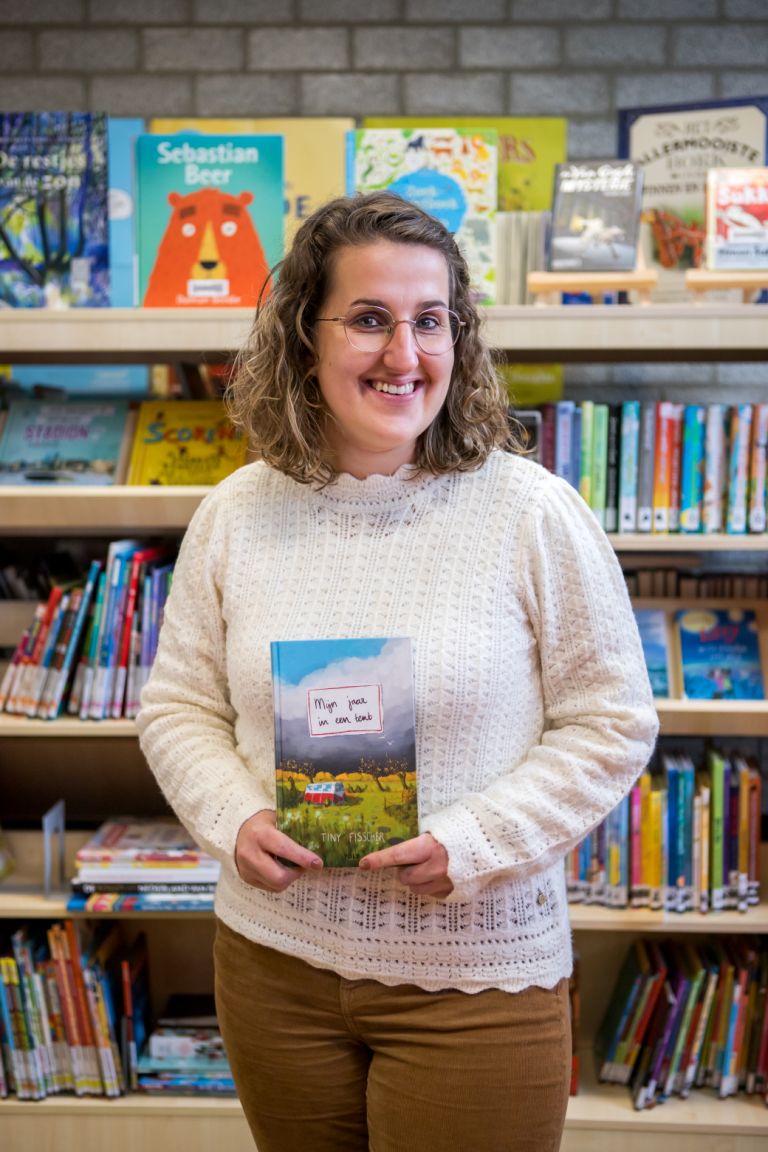 Ik heb veel boeken die ik aan zou raden, maar ik sta op de foto met het boek ´Mijn jaar in een tent´ van Tiny Fisscher. Dit boek sprak me op het eerste gezicht aan, omdat ik ook van kamperen houd. Maar het is veel meer dan kamperen: dit boek gaat over angsten overwinnen, jezelf mogen zijn, vriendschap, doorzetten en iets over hebben voor een ander. Veel actualiteiten komen terug in dit boek.